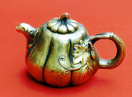 銅茶壺金屬用具是指由金、銀、銅、鐵、錫等金屬材料制作而成的器具。它是我國最古老的日用器具之一,早在公元前18世紀(jì)至公元前221年秦始皇統(tǒng)一中國之前的1500年間,青銅器就得到了廣泛的應(yīng)用,先人用青銅制作盤盛水,制作爵、尊盛酒,這些青銅器皿自然也可用來盛茶。自秦漢至六朝,茶葉作為飲料已漸成風(fēng)尚,茶具也逐漸從與其他飲具共用中分離出來。大約到南北朝時(shí),我國出現(xiàn)了包括飲茶器皿在內(nèi)的金銀器具。到隋唐時(shí),金銀器具的制作達(dá)到高峰。本世紀(jì)80年代中期,陜西扶風(fēng)法門寺出土的一套由唐僖宗供奉的鎏金茶具,可謂是金屬茶具中罕見的稀世珍寶。但從宋代開始,古人對金屬茶具褒貶不一。貯茶錫罐元代以后,特別是從明代開始,隨著茶類的創(chuàng)新,飲茶方法的改變,以及陶瓷茶具的興起,才使包括銀質(zhì)器具在內(nèi)的金屬茶具逐漸消失,尤其是用錫、鐵、鉛等金屬制作的茶具,用它們來煮水泡茶,被認(rèn)為會使;茶味走樣以致很少有人使用。但用金屬制成貯茶器具,如錫瓶、錫罐等,卻屢見不鮮。這是因?yàn)榻饘儋A茶器具的密閉性要比紙、竹、木、瓷、陶等好,具有較好的防潮、避光性能,這樣更有利于散茶的保藏。因此,用錫制作的貯茶器具,至今仍流行于世。