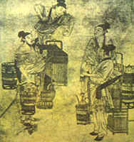 我國以茶為題材的古代繪畫,現(xiàn)存或有文獻記載的多為唐代以后的作品。如唐代的《調(diào)琴啜茗圖卷》;南宋劉松年的《斗茶圖卷》;元代趙孟俯的《斗茶圖》;明代唐寅的《事茗圖》,文征明的《惠山茶會圖》、《烹茶圖》,丁云鵬的《玉川煮茶圖》;等等。