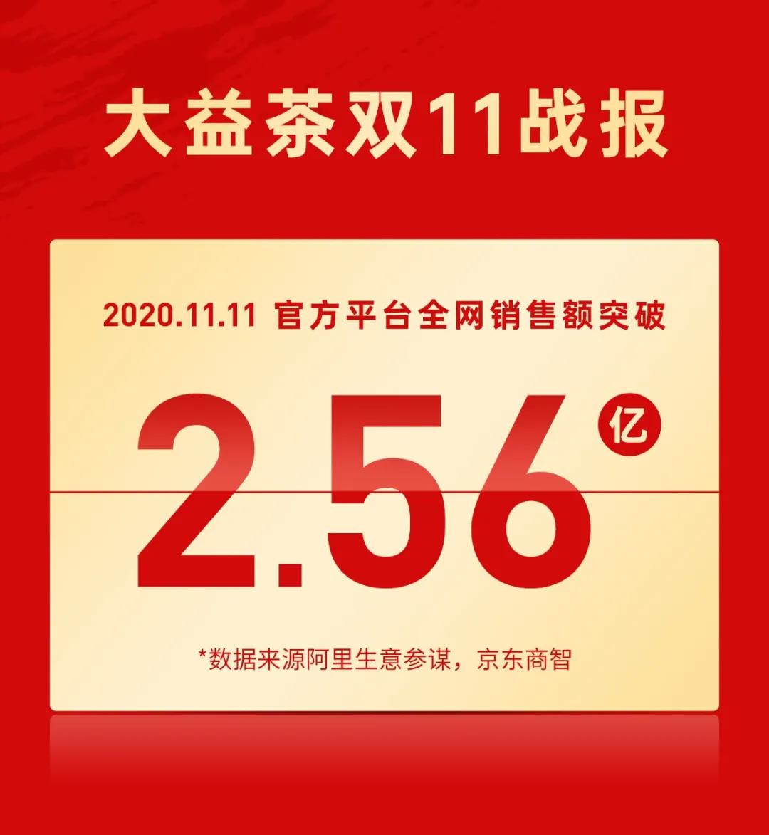 大益雙十一全網(wǎng)銷售額破2.56億 蟬聯(lián)天貓茶行業(yè)六連冠